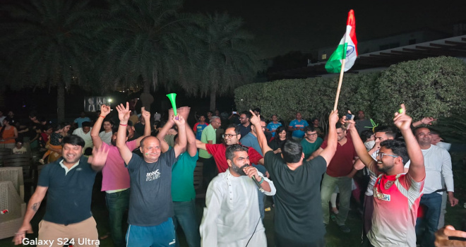 300 इंच की एलईडी स्क्रीन पर गूंजा ‘भारत माता की जय’: पैरामाउंट गोल्फ फॉरेस्ट सोसाइटी में भारत–न्यूजीलैंड फाइनल का सामूहिक प्रसारण, जीत पर ढोल-नगाड़ों के साथ जश्न